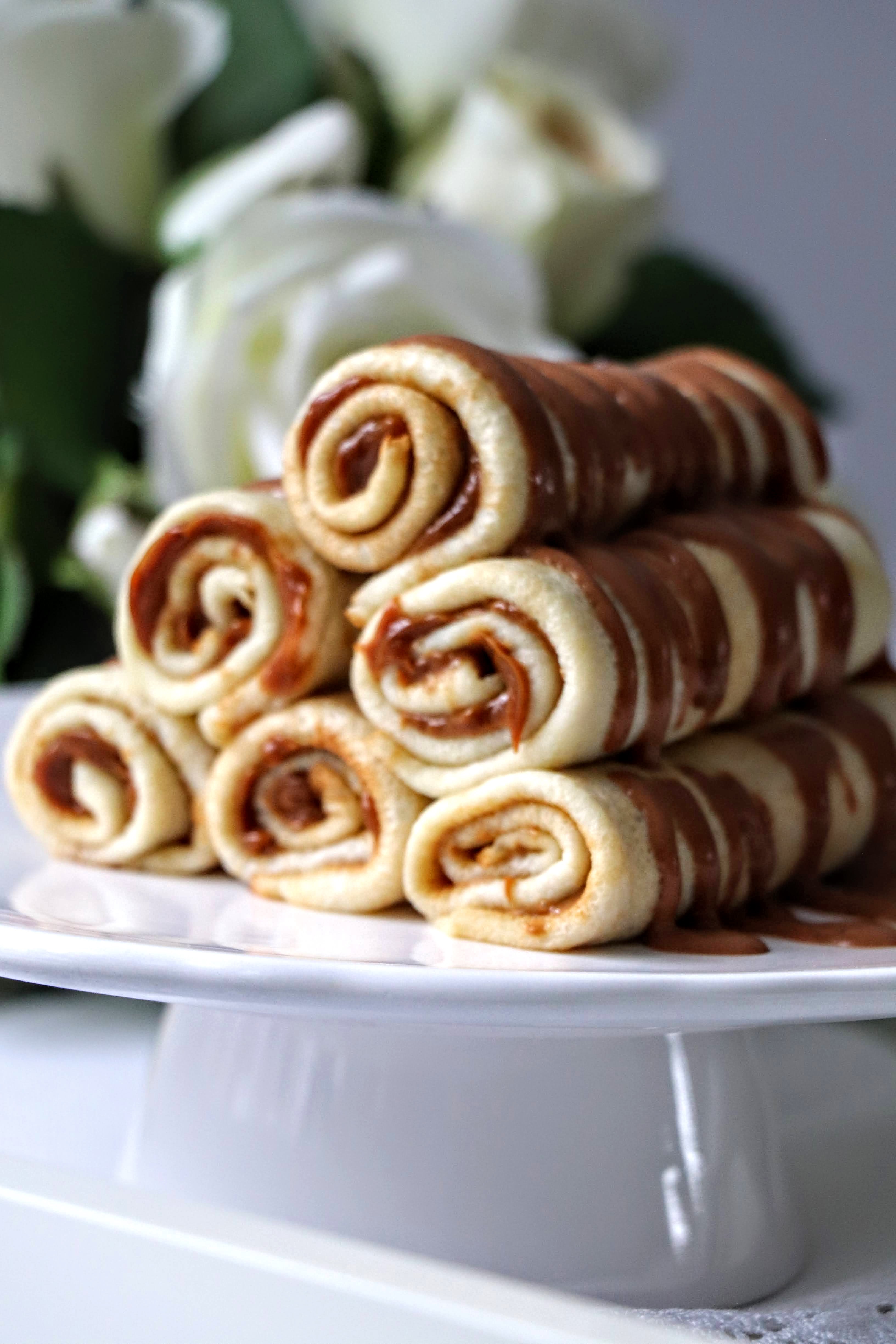 Prošle nedelje sam kupila speltino brašno i već sam pravila slane palačinke sad sam htela da isprobam i slatke, ovog puta sa punjenjem od dulche de leche ili ti naše kondenzovano karamel mleko, koje sam sasvim slučakno pronašla u prodavnici.